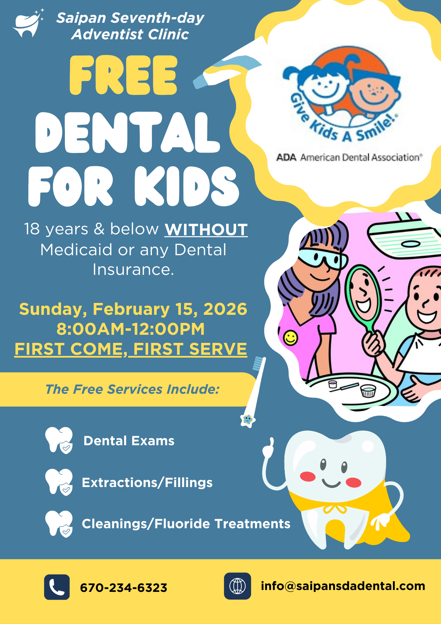 The Saipan Seventh-day Adventist Clinic is committed to making a positive difference in our community. Whether it be excellent patient care, educating children or young adults in the classroom, community health fairs, free outreach days such as “Give Kids a Smile” and “Clinic with a Heart”, or building partnerships that promote a better more fulfilling life, we are here to serve and promote positive change.